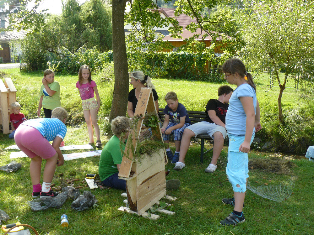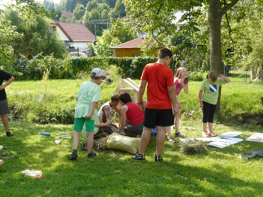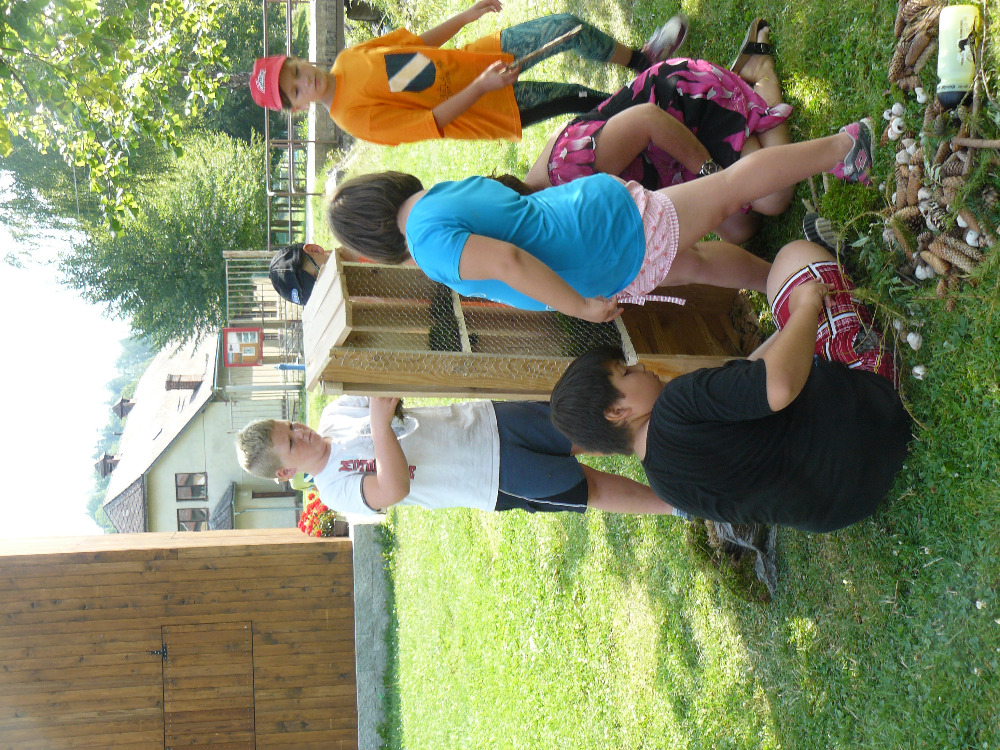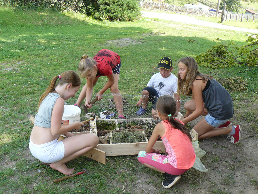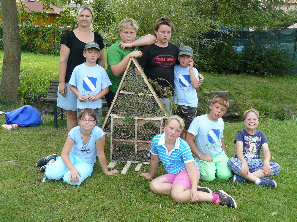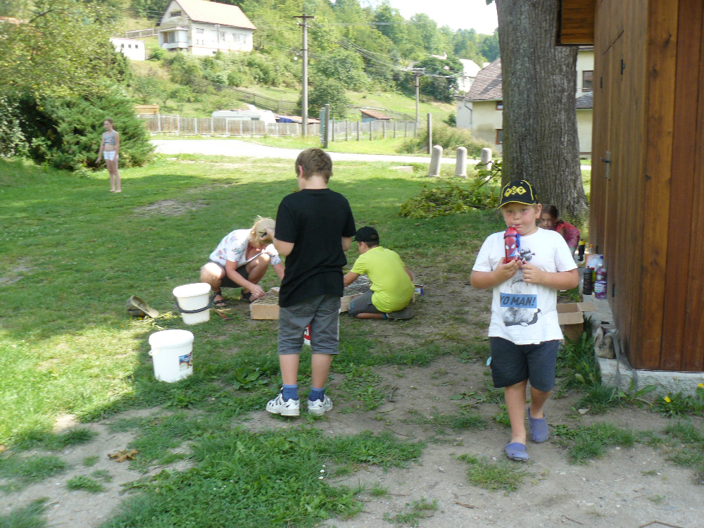 Dnešní, závěrečný den, byl pracovní. Čekala nás spousta práce s kompletováním všech tvořivých výrobků. Dodělávali jsme velkou kartu informací o hmyzu, která byla celotýdenní. Hmyzí hotel jsme vystlali a vystavěli z přírodnin. Všech pět hmyzích hotelů jsme rozmístili v různých částech obce – u MŠ, Pod Lipami, v parku naproti obchodu.