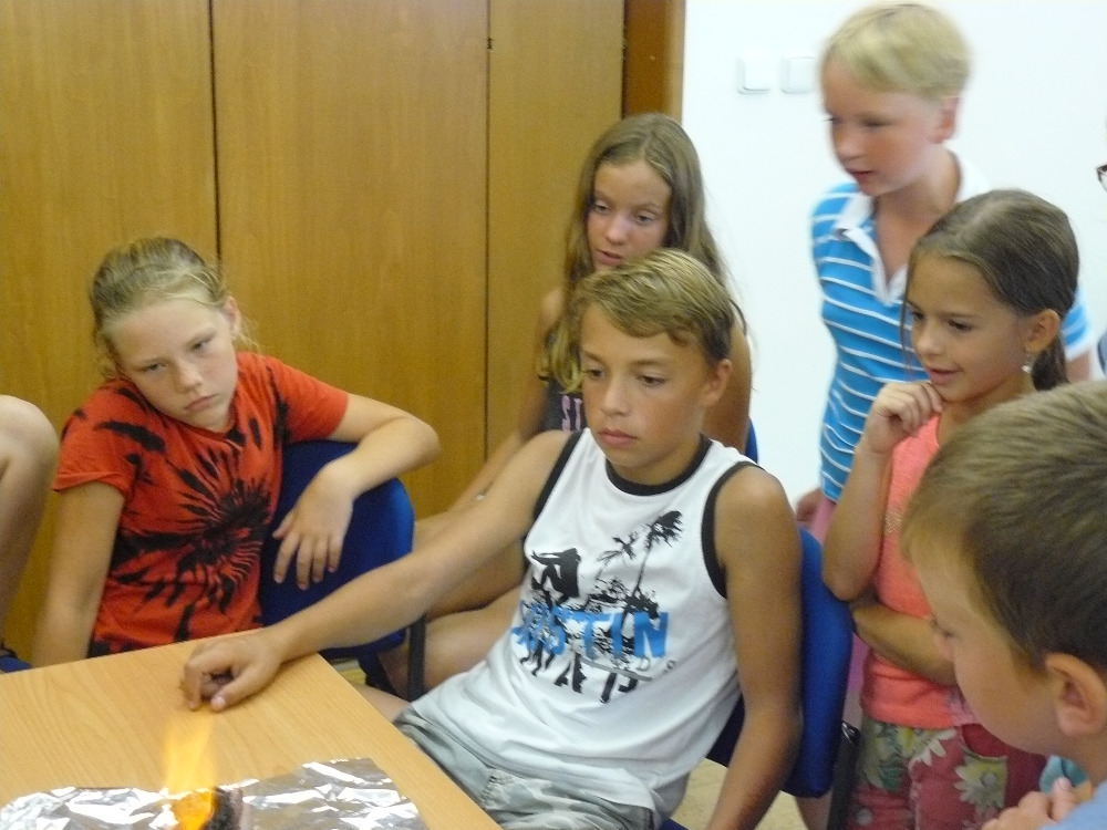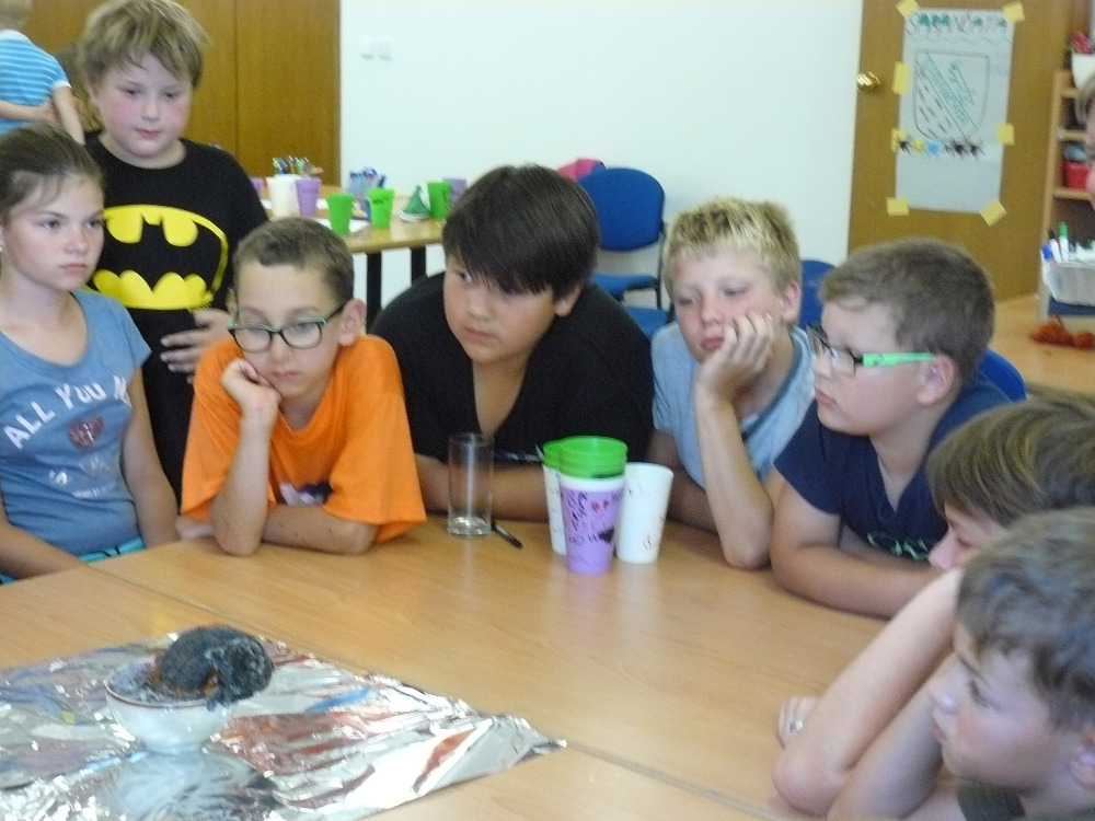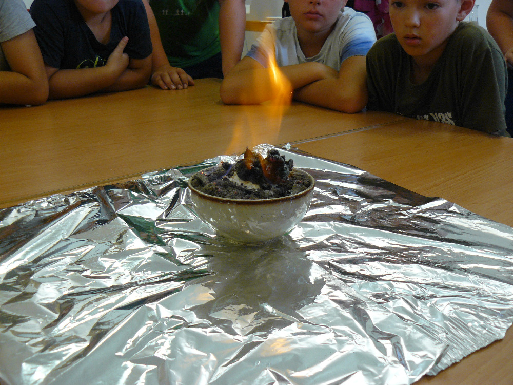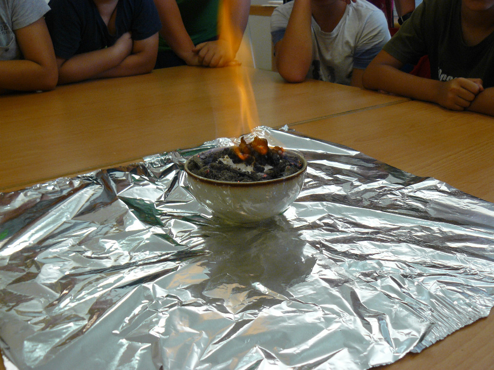 Po obědě proběhl již tradiční pokus, který naplánoval Filip Bačovský. Jmenuje se Faraonův had a můžete se na něj podívat na youtube.cz.