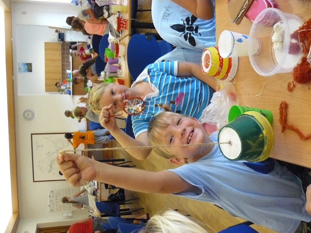 Všechny výrobky jsme roztřídili dětem do sáčků, aby si je mohly odnést domů. Finálním výrobkem bylo krmítko pro ptáčky z květináčů.