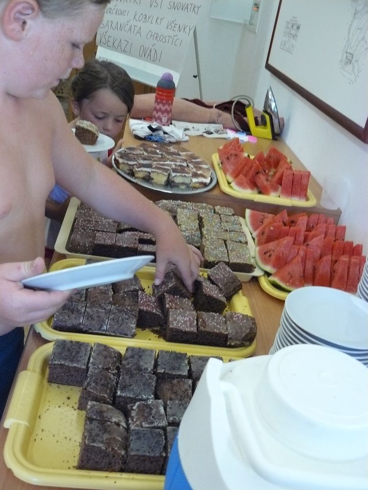 Svačina odpoledne : perník, domácí buchta od paní Prudilové, meloun