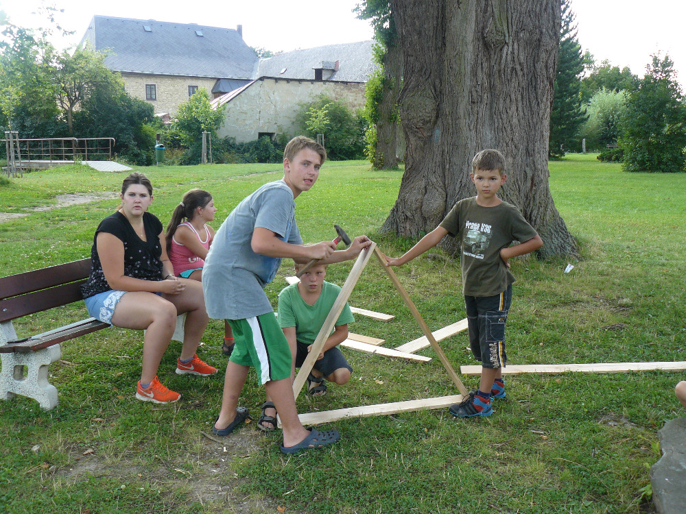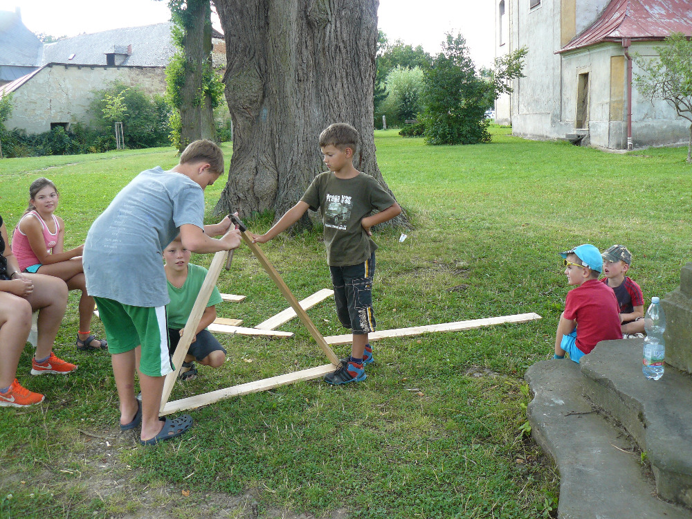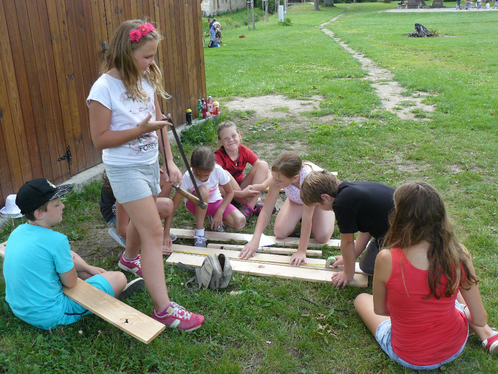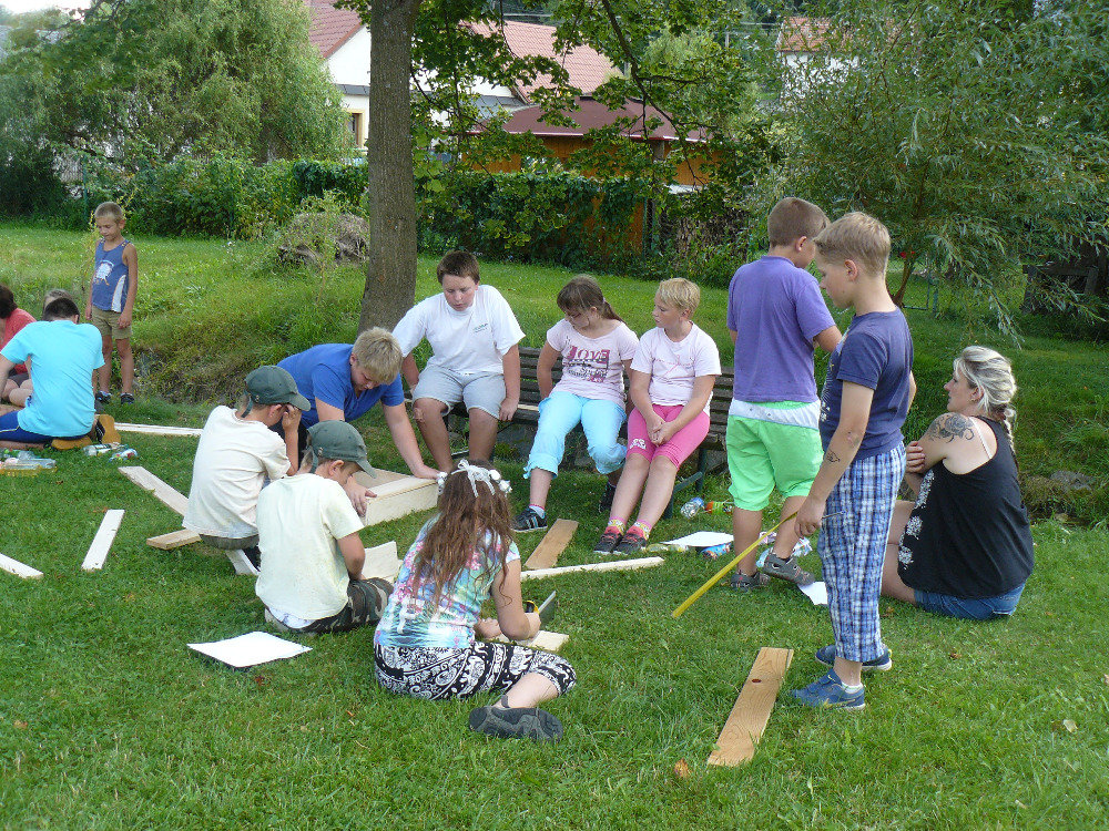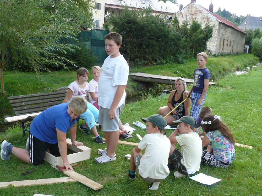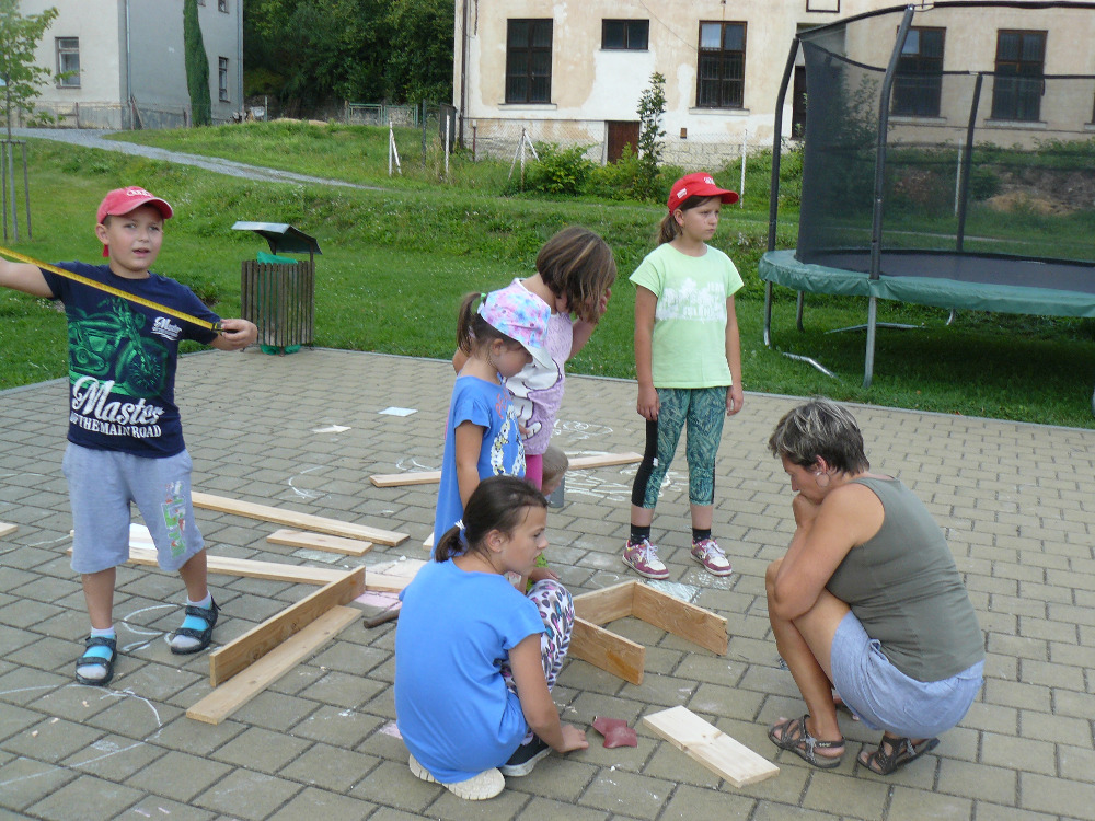 Po obědě měly děti za úkol vymyslet projekt na stavbu Hmyzího hotelu, který po celý týden budou ze dřeva a přírodních materiálů stavět.