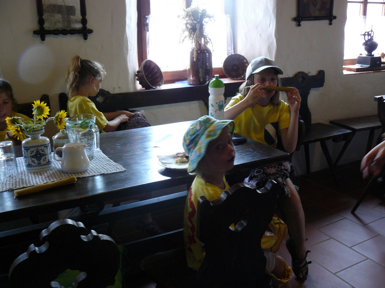 Mohly si vyzkoušet práci s cepem, mletí mouky, včelařské řemeslo, pečení buchet v peci, krmení zvířátek – kozy, sušení bylinek, tkaní koberců atd.