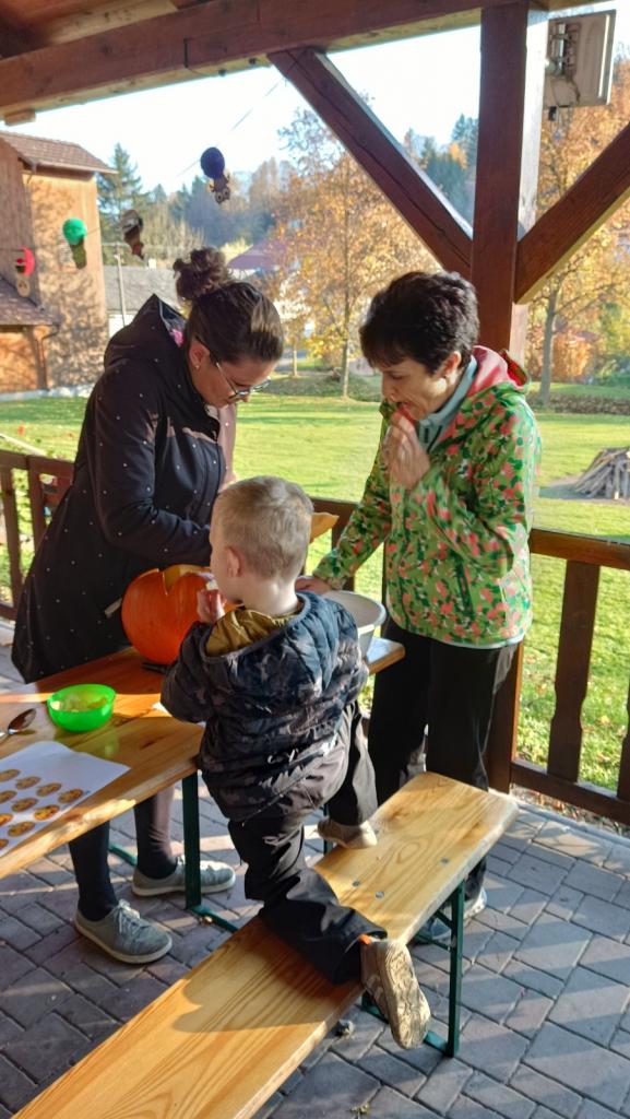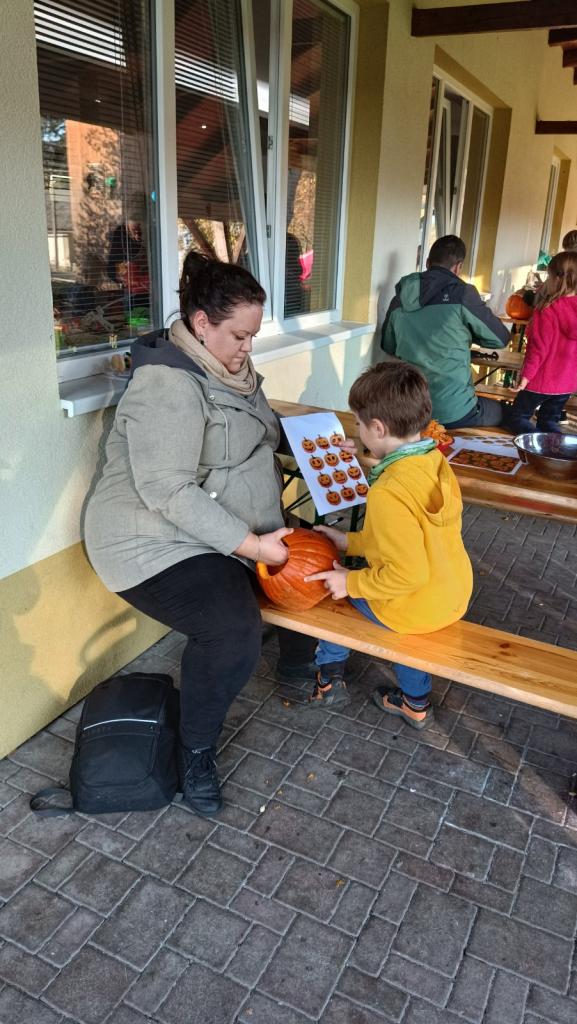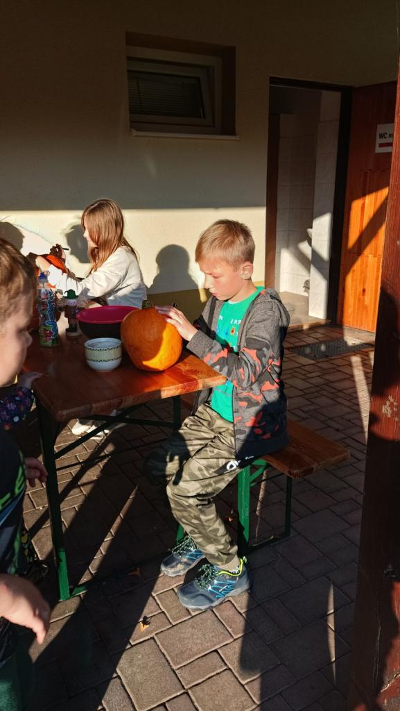 Ve čtvrtek 27.10.2022 se za krásného slunečného odpoledne sešli rodiče a děti pod Lípami, aby si vydlabali společně hallowenskou dýni. Ta má mít podle pověstí, co nestrašidelnější obličej, aby odháněla zlé duchy od domu.