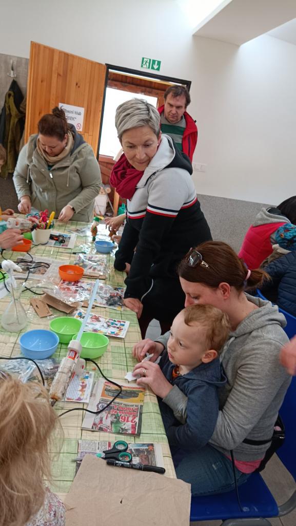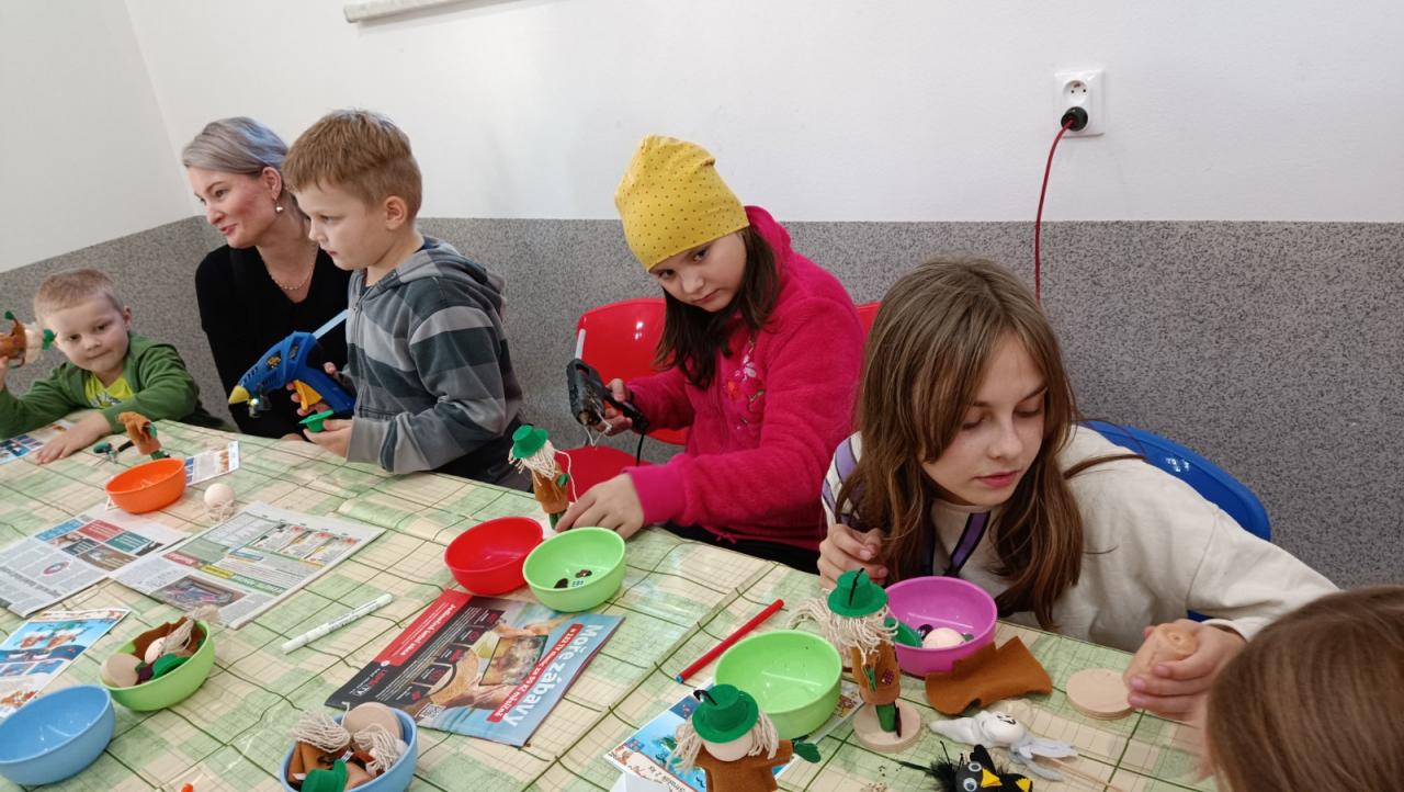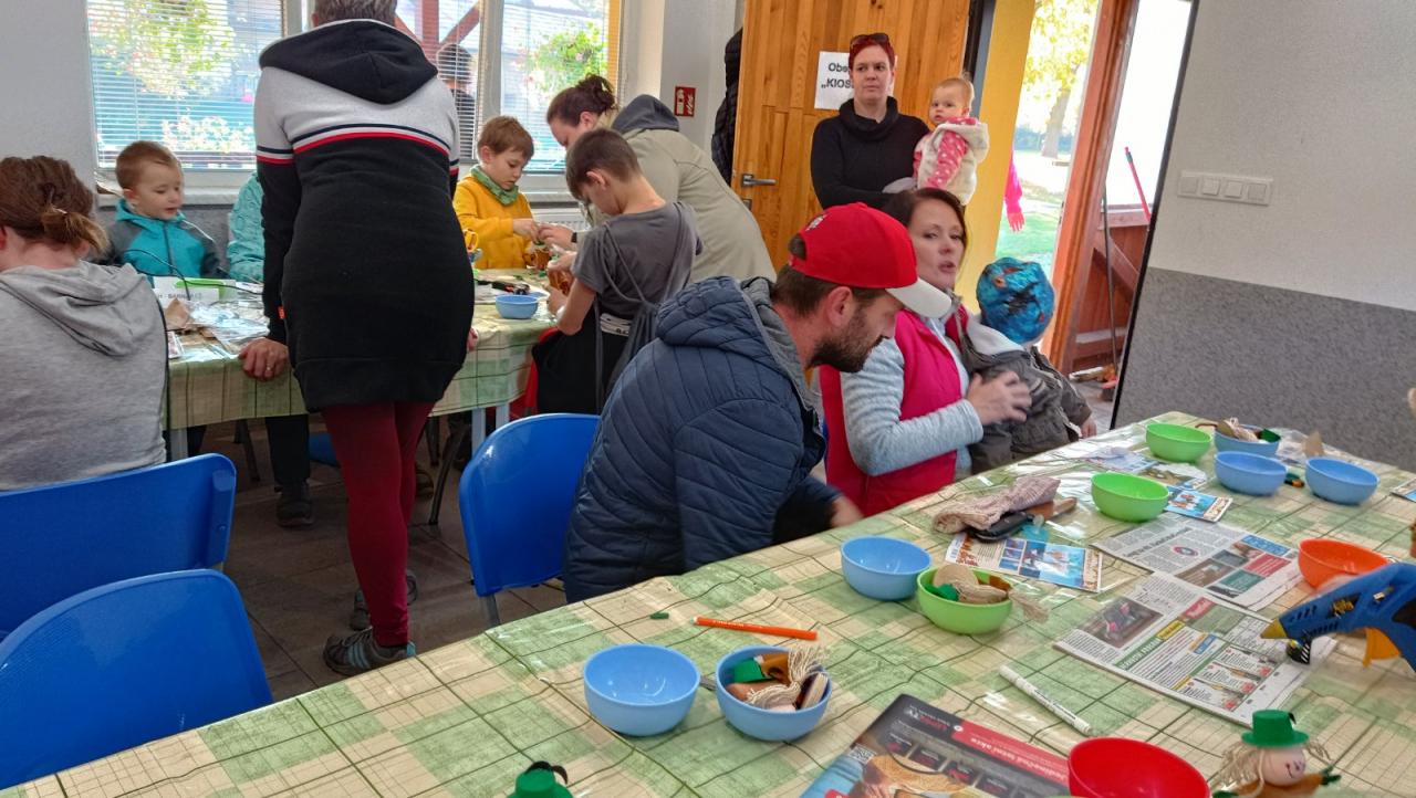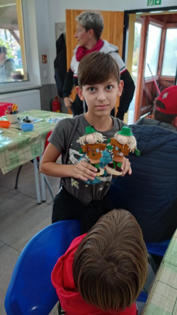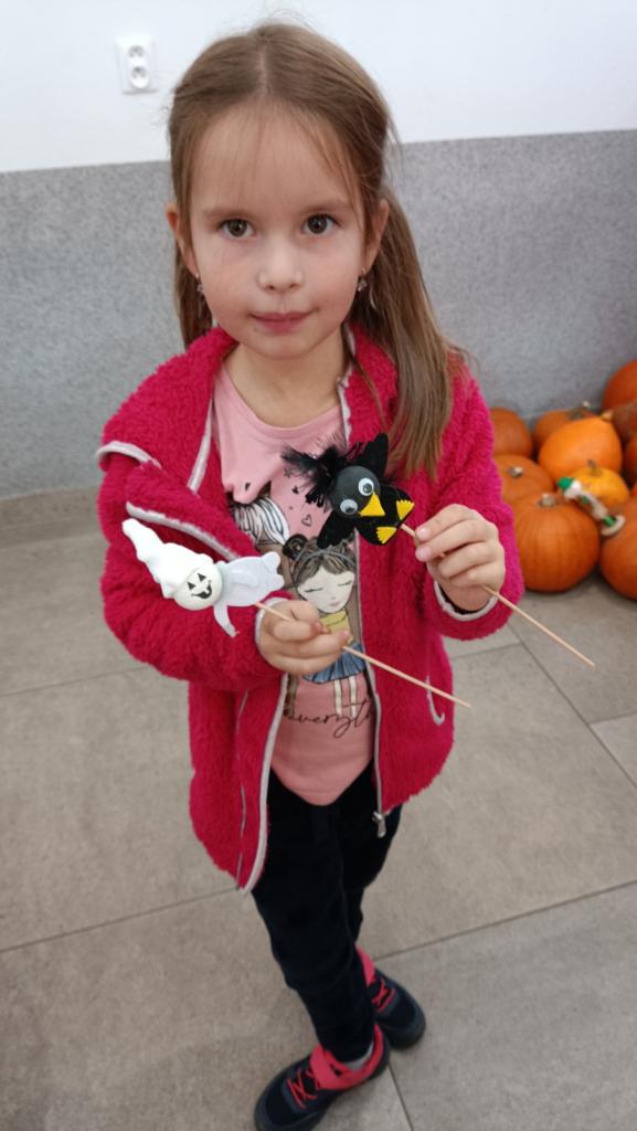 Kromě dýně si mohly děti vyrobit malé postavičky strašidýlka, ducha a kosáka. Na závěr si opekli na ohýnku buřty.