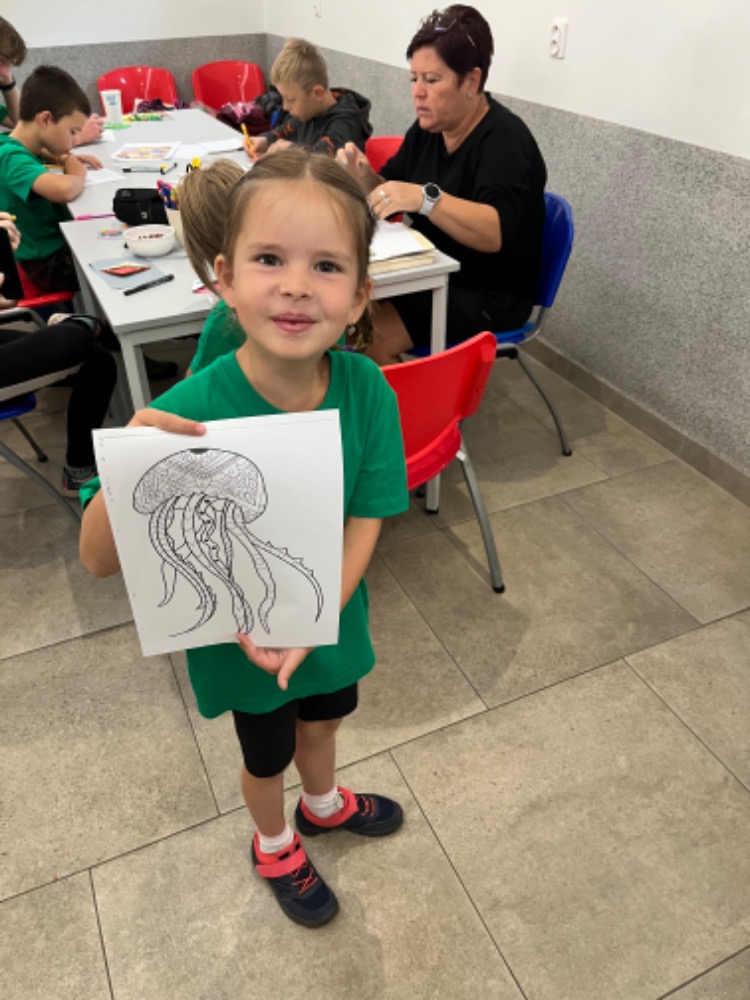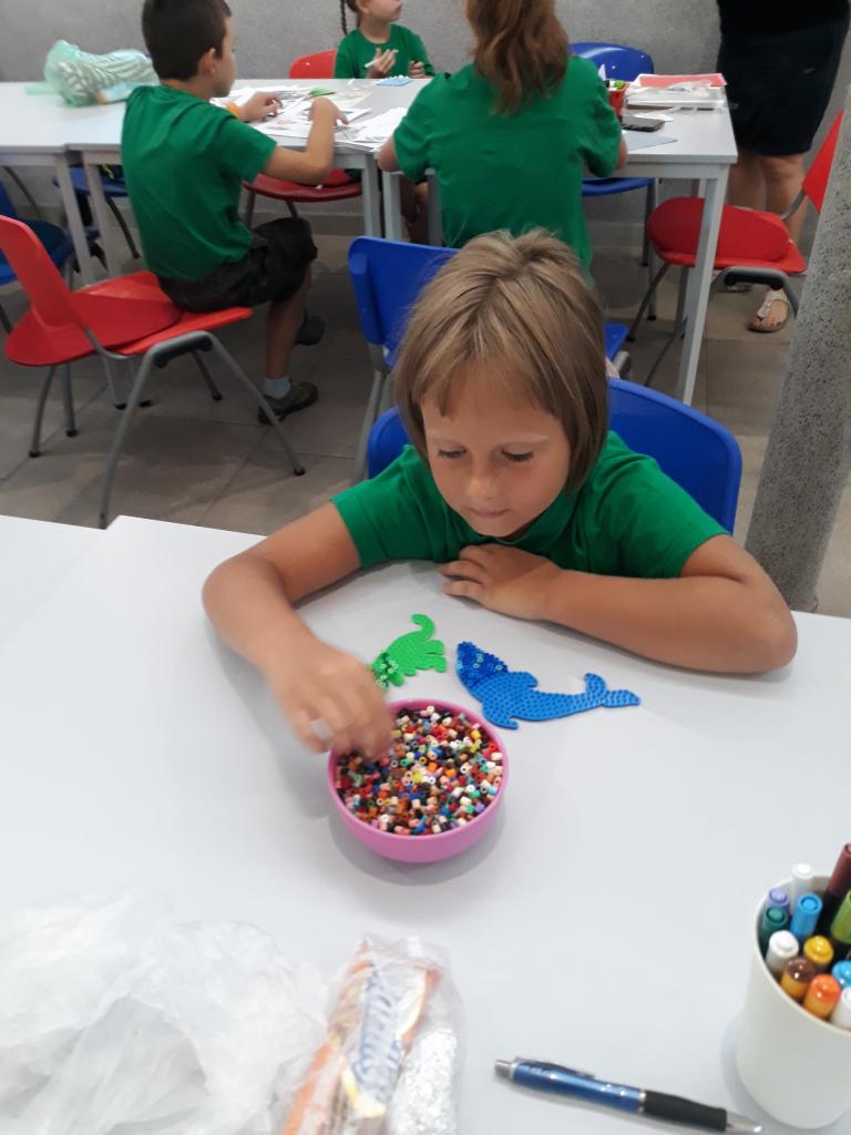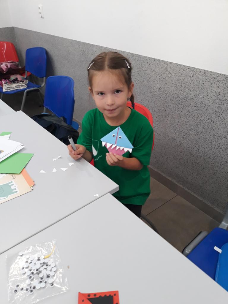 Ráno jsme vyráběli vtipné záložky do knihy. Děti vyráběly i některé záložky pro své rodiče. Opět namalovaly putovní kamínek a skládaly obrázky ze zažehlovacích korálků. Tradičně proběhla rozcvička – dnes daleký běh po vesnici Bělá.