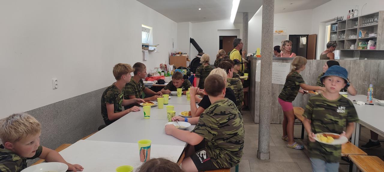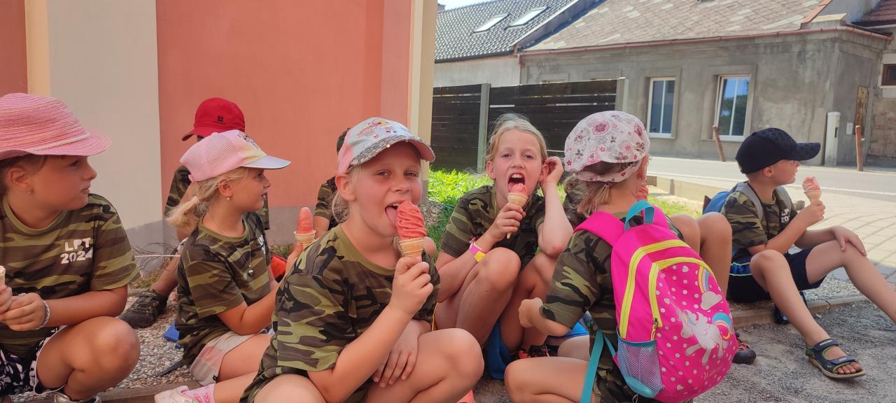Po příjezdu do Moravské Chrastové jsme zašli, kdo chtěl, na točenou zmrzlinu. Zbytek odpoledne jsme byli na koupališti. Po obědě jsme si stihli ještě zahrát týmovou hru – kdo dřív složí z kroužků celý řetěz.