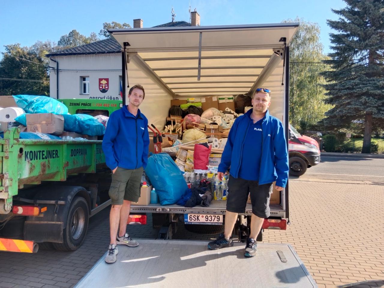Díky vám všem, co jste neváhali a přispěli do sbírky, díky obci Bělá nad Svitavou, která také přispěla, díky dalším obcím Bohuňovu a Banínu, bylo nákladní auto, zapůjčené obchodním řetězcem PLANEO, řidičům tohoto auta a iniciátorům této akce – Petrovi Vaverkovi ml. a jeho kamarádovi, naprosto zaplněno základními potřebami pro postižené povodněmi.