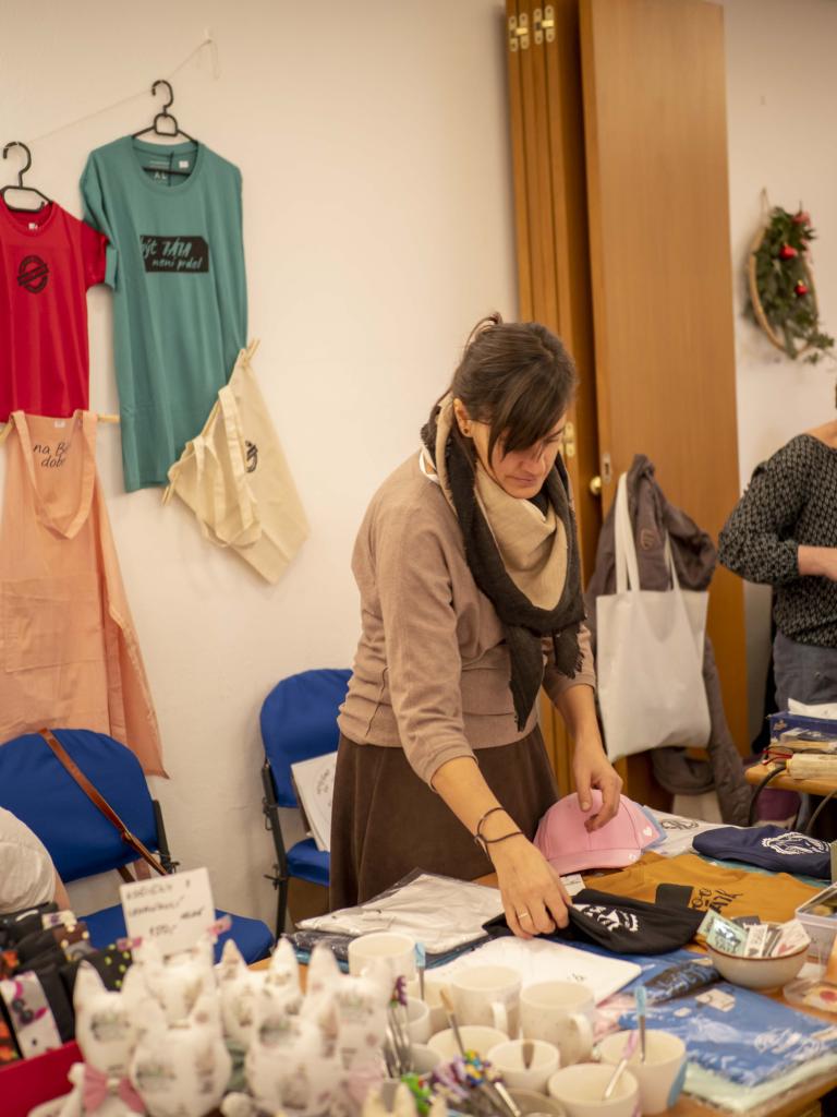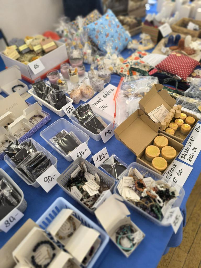 Na trhách nechyběly ručně odlévané svíčky, šité čepice a nákrčníky, originální náušnice, háčkované výrobky či krásná keramika. Svou tvorbu prezentovali i místní tvůrci – mezi nimi paní Pavlína Kociánová, která se věnuje výrobě domácích sýrů a jogurtů (BĚLÁ NAD SVITAVOU 57 stačí přijít a zazvonit v jejím obchůdku), nebo šikovná majitelka šicí dílny nabízející kvalitní textilní zboží. Každý kout sálu přinášel něco jedinečného a bylo těžké odejít s prázdnou.