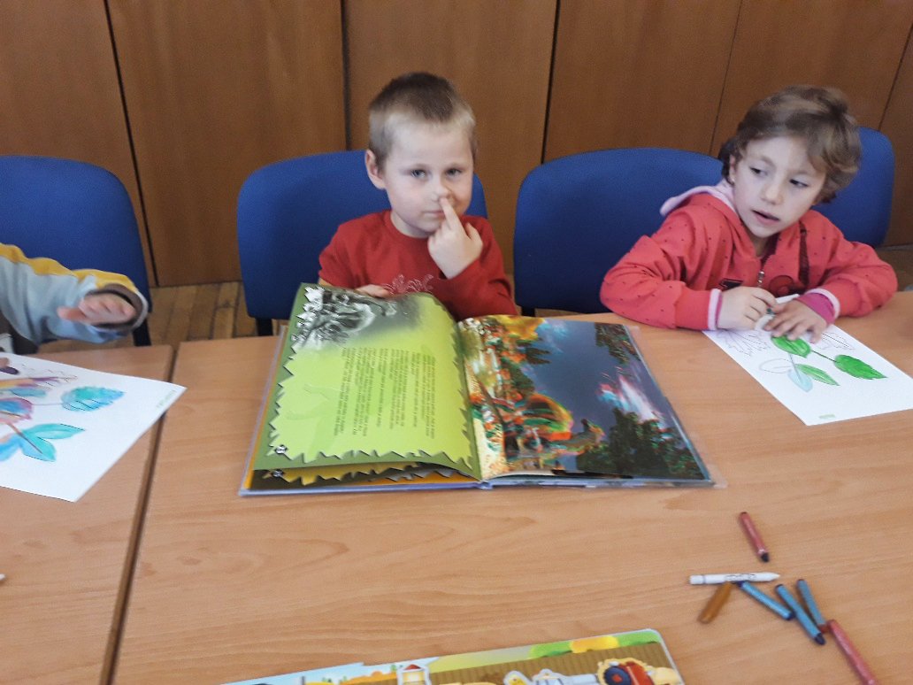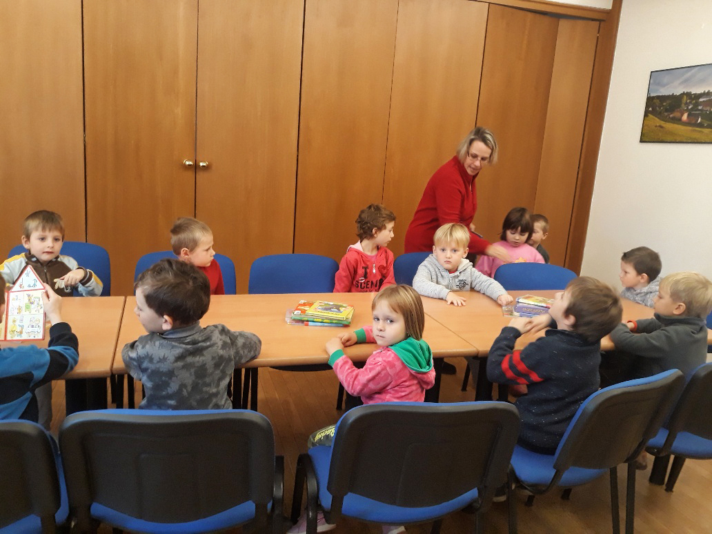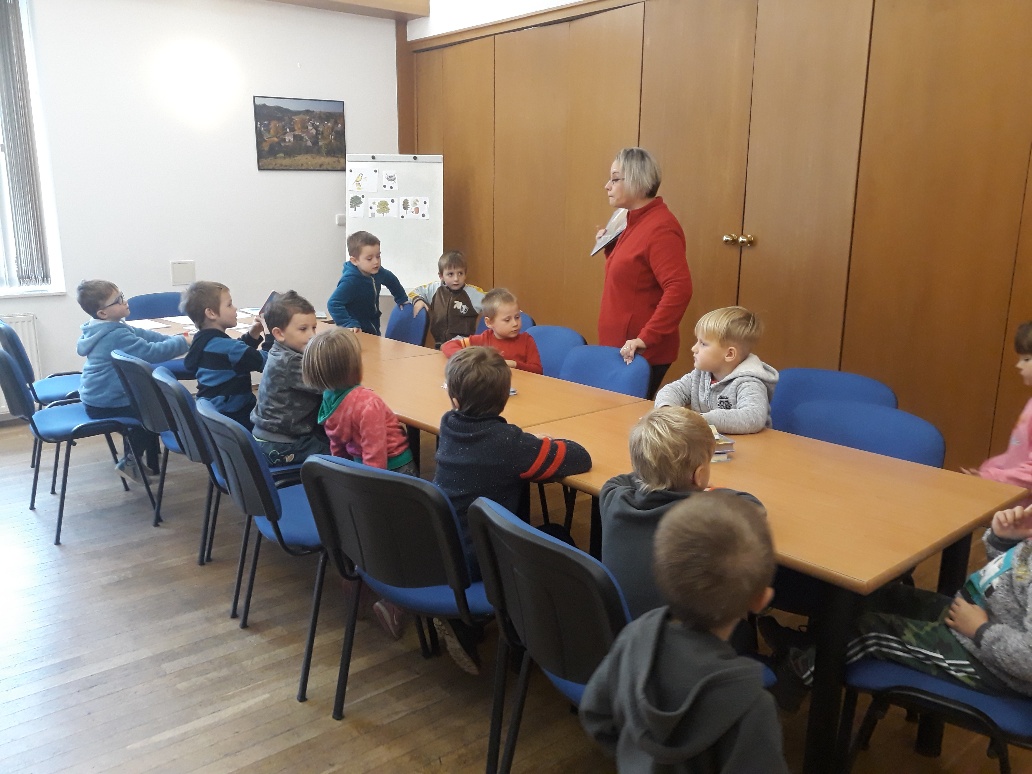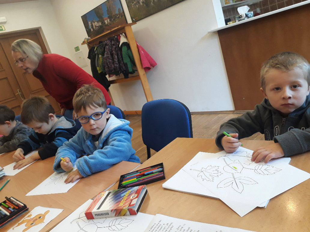 Ve čtvrtek 7.11.2019 dopoledne se přišly děti z malého i velkého oddělení podívat do místní knihovny, aby se seznámily s provozem a se službami, které je tam možné využívat.Byl pro ně připraven krátký program. Malé děti si poslechly pohádku na podzimní téma O smutném stromu a velčáci pohádku Proč modřín v zimě opadává? Vymalovaly si obrázek a našel se i čas na prohlédnutí nových knížek pro děti.